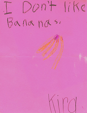 Several years ago, when my daughter started school, my job was to pack her lunch. On the morning of her first day, I packed a PB&J, juice box, snack, and a banana. That evening when I inspected her lunch box, everything had been eaten, but the banana. Taking no note of the banana, I packed the next day’s lunch with another PB&J, juice box, snack and the same banana. Again, on the second evening, I discovered the lunch box empty, except for the banana. As you can guess, I packed the same lunch for the third day—with “the” banana. When I opened her lunch box on the third evening I found “the” banana with a drawing made with her best crayons. The drawing was of a banana and a caption that read: “I don’t like bananas.”